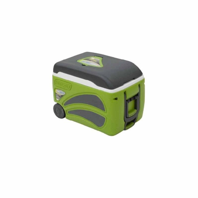 The Vango Pinnacle Wheelie 45L cool box is ideal for picnics, parties, or camping trips. Able to hold 66 cans, you are sure to fit everything in. Its insulated body with polyurethane foam helps keep food and beverages cold for up to 100 hours. It features 2 small handles for carrying and a longer one with wheels on the opposite side for easy transportation.
