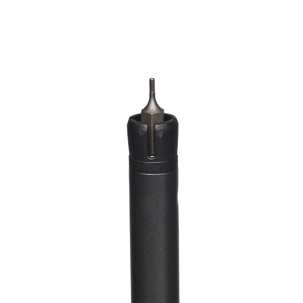 - 1.5 mm hex bit tool built into shaft for in-field maintenance