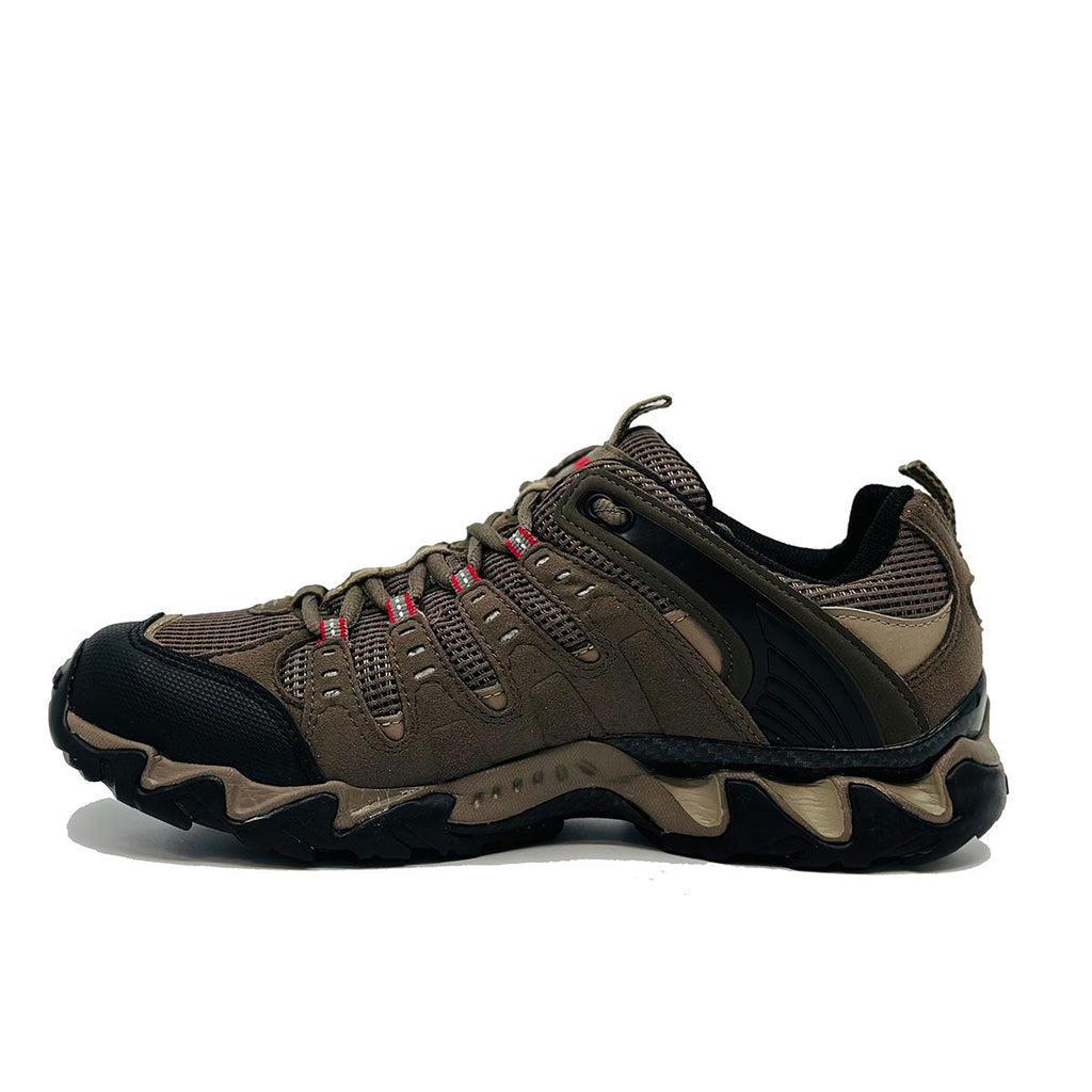 - Velour leathers and mesh uppers for lightweight comfort