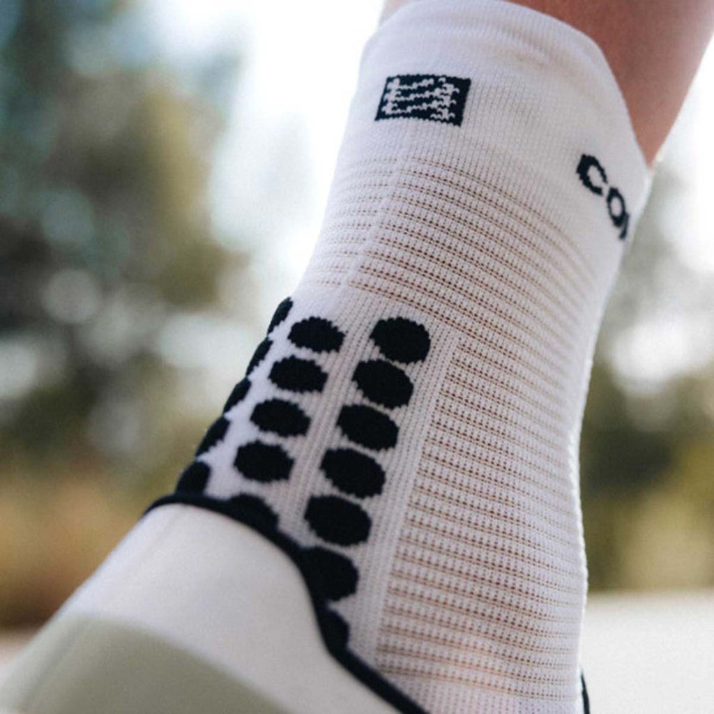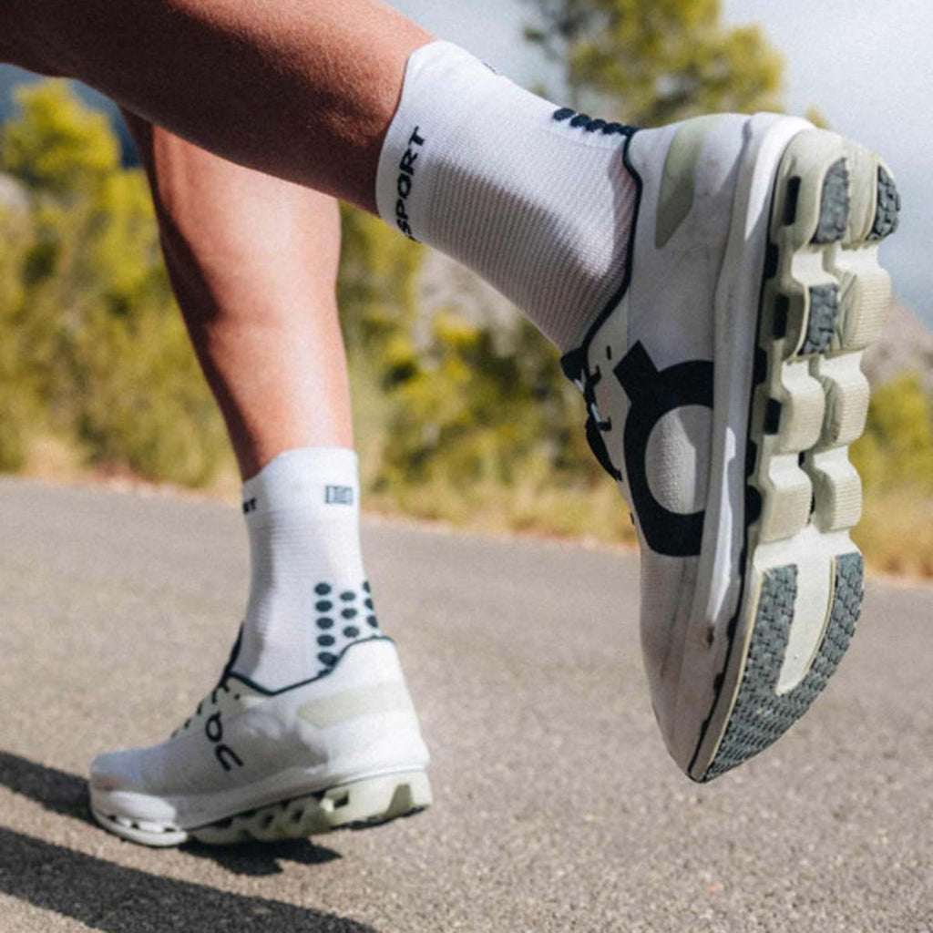 The Compressport Pro Racing Socks v4.0 Run High offer superior comfort, targeted protection, and advanced ventilation, making them the ultimate choice for high-performance road running.