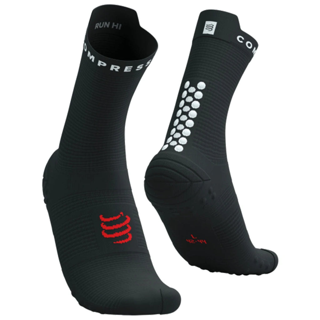 The Compressport Pro Racing Socks v4.0 Run High offer superior comfort, targeted protection, and advanced ventilation, making them the ultimate choice for high-performance road running.