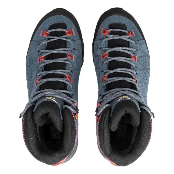 The Alp Trainer 2 Mid GORE-TEX® Women's Shoe is designed to offer reliable comfort and protection for alpine hiking. Constructed with a durable suede upper and reinforced with stretch fabric inserts, this mid-cut boot provides reliable support and durability on rugged terrains. The GORE-TEX® Extended Comfort liner ensures waterproof and breathable performance, while the Vibram® Alpine Hiking outsole offers enhanced traction and control. Salewa’s signature 3F System provides firm ankle support and stability, and the adjustable Climbing Lacing and customisable MFF+ footbed allow for a precise fit that follows the natural shape of the female foot.