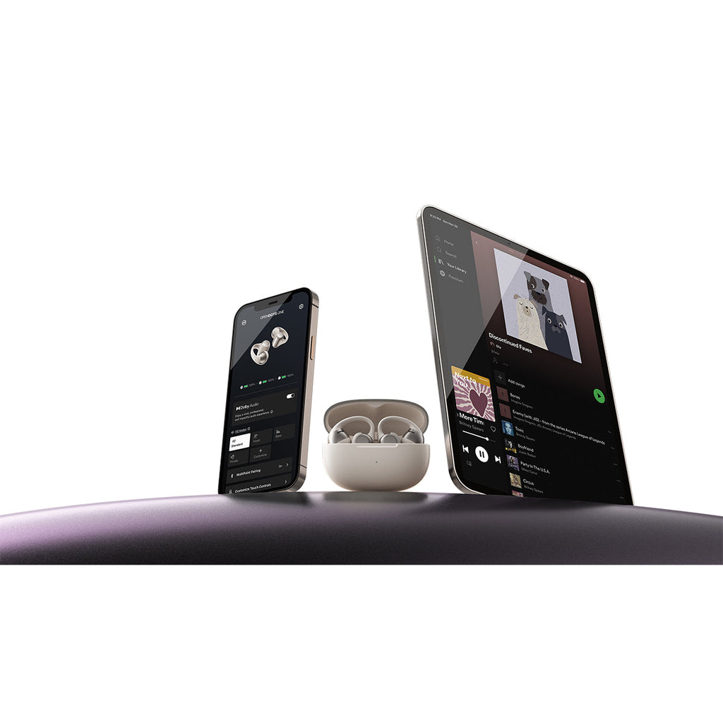 The dual-driver system, enhanced by Bassphere™ technology, delivers surprisingly powerful bass and rich, detailed sound. DirectPitch™ technology minimizes sound leakage, keeping your audio private. Dolby Audio is also supported for a more expansive listening experience.