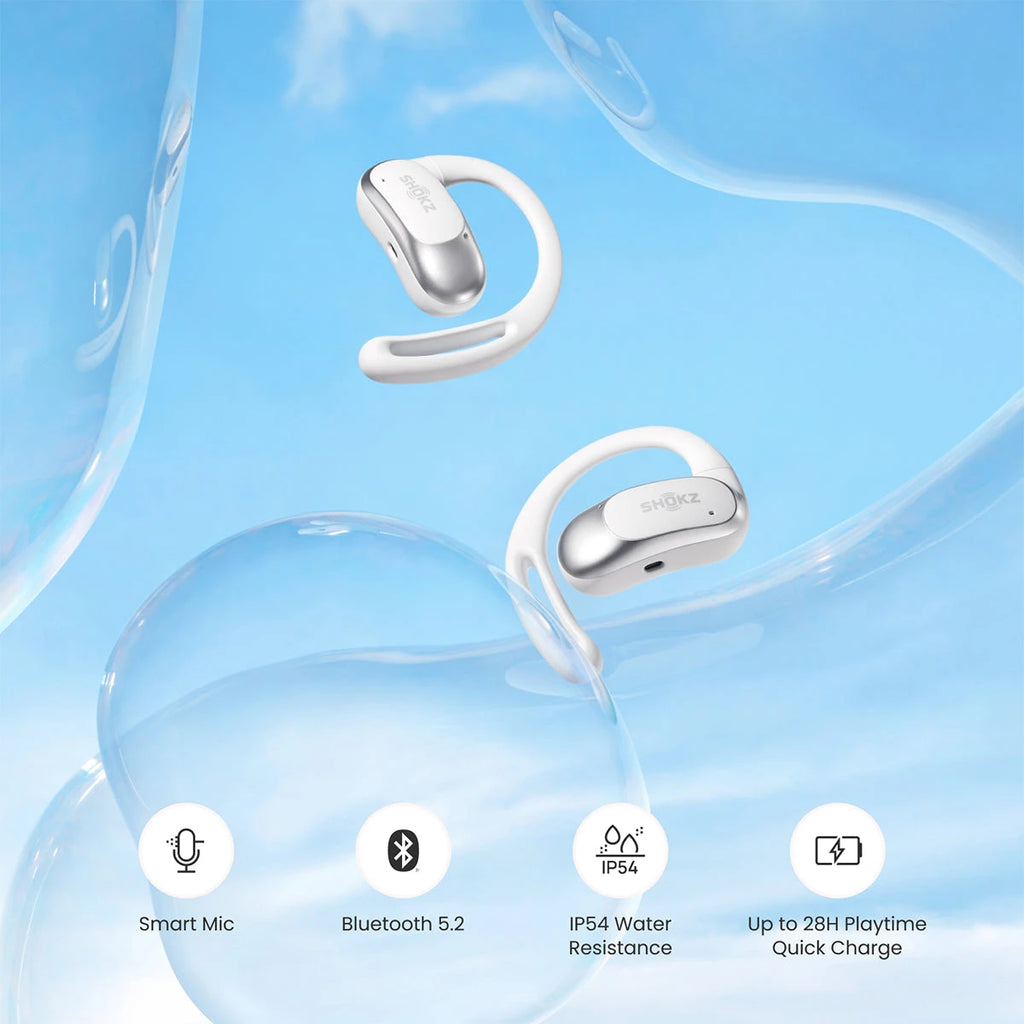 The Shokz OpenFit Air Open-Ear True Wireless Earbuds redefine how you experience sound during your activities. Designed with cutting-edge bone conduction technology, these earbuds deliver premium audio quality while keeping your ears open to the environment. Ideal for runners, cyclists, and fitness enthusiasts, the open-ear design ensures safety by allowing ambient sounds to be heard alongside your music or calls. The lightweight, ergonomic construction provides a secure and comfortable fit, making them perfect for extended wear.