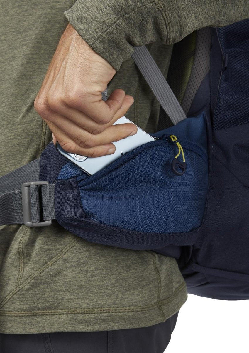The pack offers easy access to all your kit using the zipped front and lower entry, with an internal divider panel to keep everything organised. The padded hip belt has easy-access pockets which are perfect for keeping snacks or a compass close to hand, while the elastic front bungee is the ideal place for stashing your wet gear. On extended trips you’ll be glad of the base and side compression, which you can cinch to secure your carry as supplies decrease. The pack is compatible with a 3L water bladder, allowing you to stay hydrated on the move, and features a detachable rain cover which can be quickly deployed when the weather rolls in.