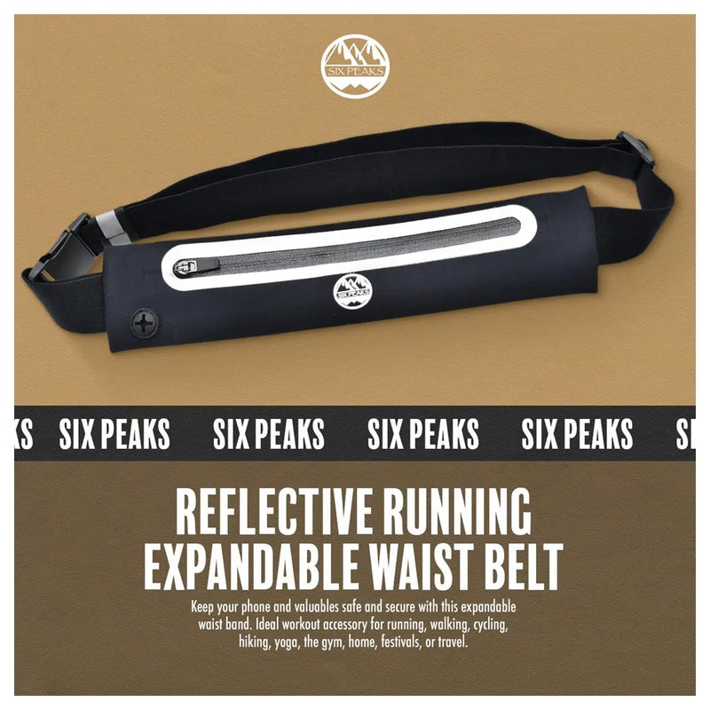 Keep your essentials secure and accessible with the Six Peaks Reflective Running Expandable Waist Belt. Designed for active lifestyles, this waist belt is perfect for running, walking, cycling, hiking, yoga, and more. The front zip pocket provides ample space for your phone and valuables, while the waterproof fabric and PU water-resistant zip ensure your items stay dry. The high-visibility reflective fabric enhances safety during night-time activities. With a push-to-lock secure fastener and fully adjustable design, this belt fits most waist sizes comfortably. The expandable pocket can accommodate larger phones, and the convenient earphone hole allows you to listen to music on the go.