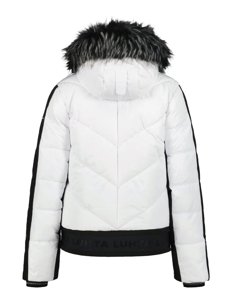 The LUHTA Sorsatunturi Ski Jacket for women is your go-to garment for outdoor adventures. This jacket is optimized for harsh conditions, featuring A.W.S. EXTREME technology, down imitation padding, and windproof materials that provide essential thermal insulation. A plethora of smartly designed pockets and features amplify its functional versatility.