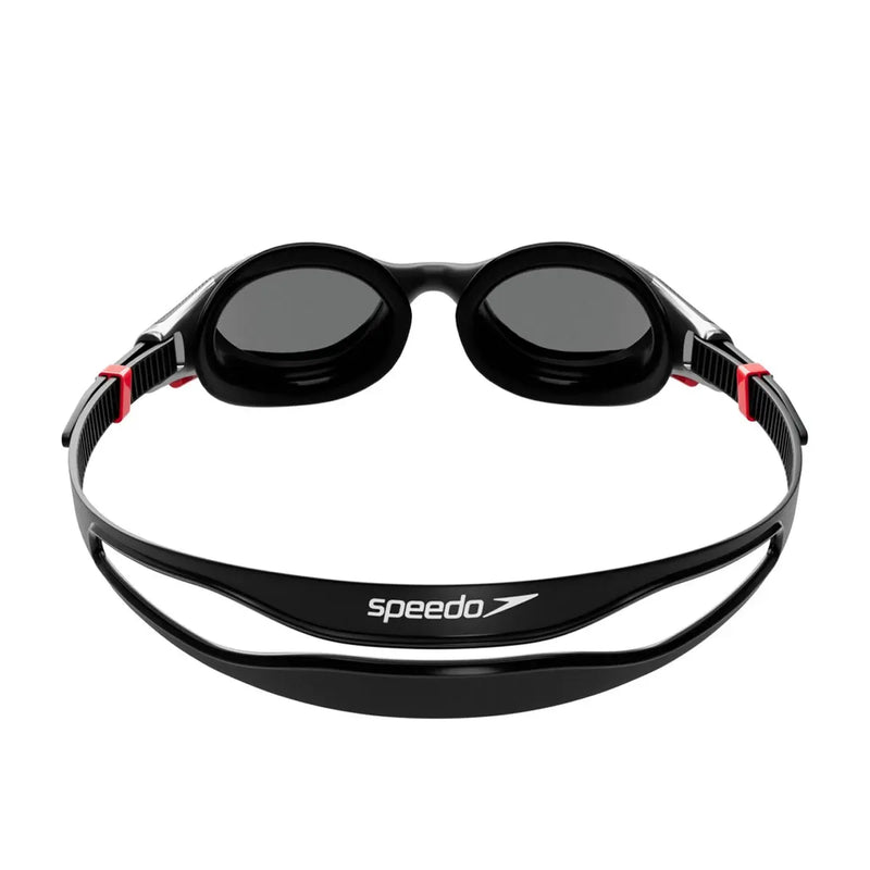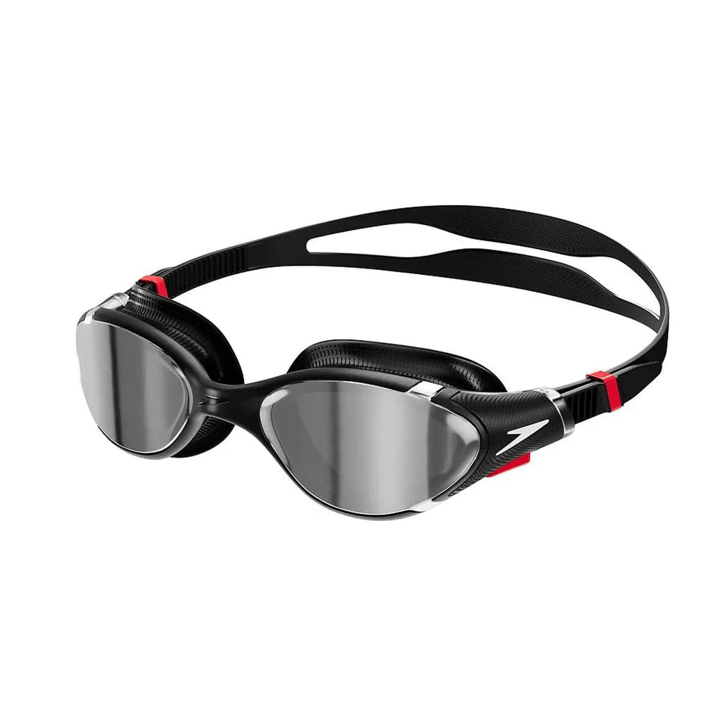 Experience top-tier performance with the Biofuse 2.0 Mirror Goggles by Speedo. Thanks to Speedo's Biofuse technology, these goggles fit comfortably and prevent any leaks, allowing for uninterrupted swimming sessions. The mirrored lenses reduce glare and improve visibility in bright settings, while the flexible frame conforms to your face for a personalized fit. These goggles also provide UV protection and an anti-fog coating, making them perfect for both indoor and outdoor swimming.