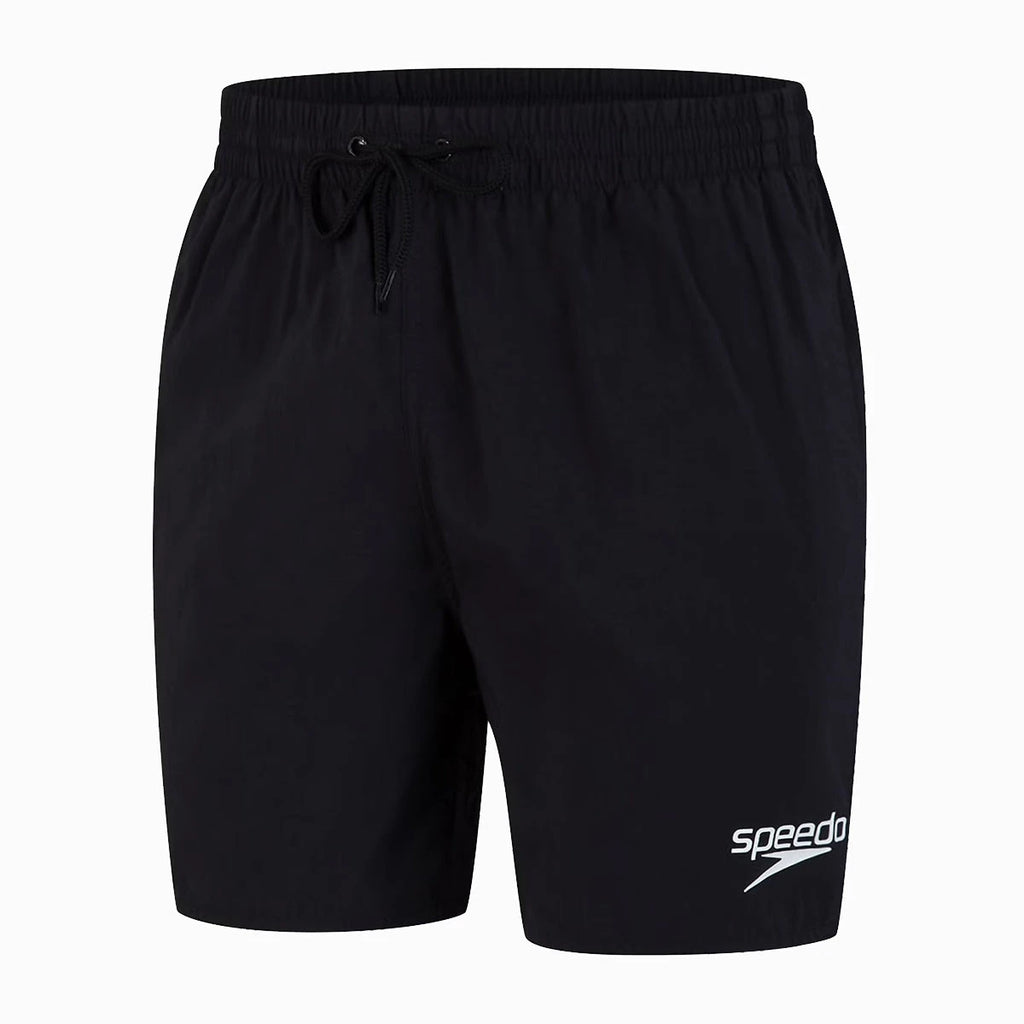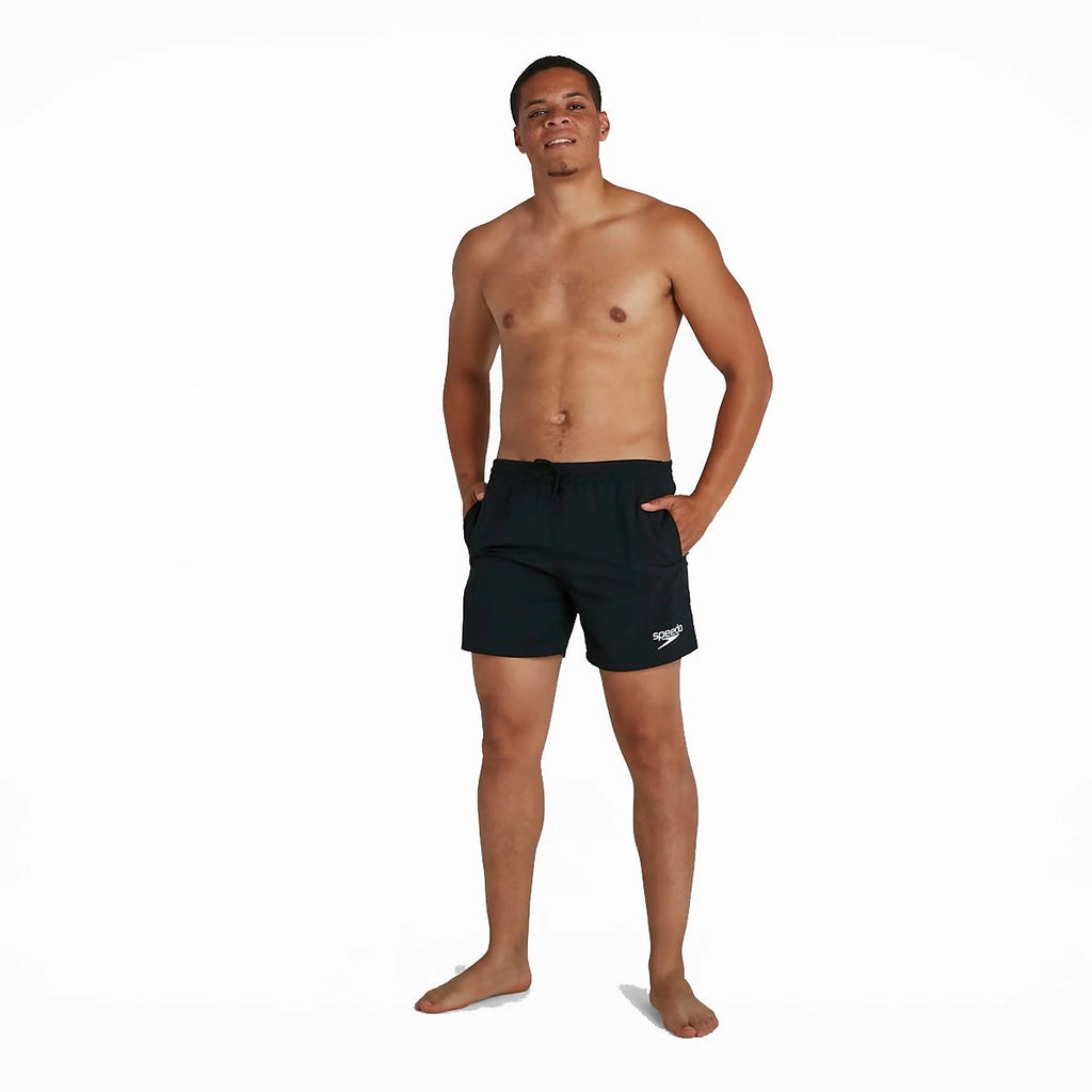 Dive into style and comfort with the Men's Essentials 16" Swim Short from Speedo. Crafted in timeless black, these swim shorts offer a classic look that never goes out of fashion. Whether you're hitting the pool or the beach, these shorts are designed to keep you comfortable and confident all day long. With a side pocket drainage system and a drawstring waist, you'll enjoy optimal comfort and security, even when wet. Plus, the shorts are made from 100% Recycled Nylon fabric, providing a lightweight and eco-friendly option for your aquatic adventures.