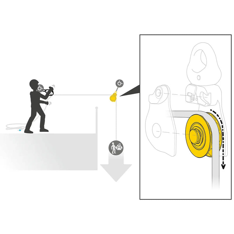 - Special side plate design protects the rope path and accommodates a Prusik friction hitch.