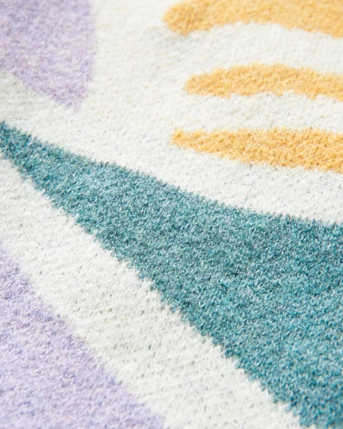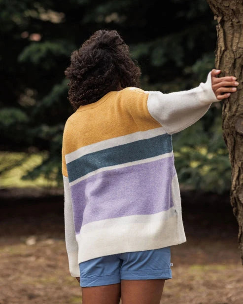 The Sunsets Recycled Oversized Knitted Jumper by Passenger Clothing is designed for ultimate comfort with a stylish jacquard knit pattern, perfect for any adventure.