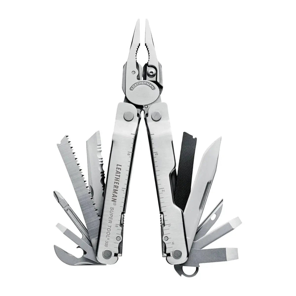 The award-winning, Leatherman Super Tool 300 is the multi-tool for the working man, and or woman. Larger pliers are the strongest that Leatherman have ever produced and the sloped-top handle design means you can maneuver them further into tight spaces. When you're working with gloves on, the large side cutouts make it easy to still grab components and rolled handles make for a comfortable grip. Stranded, hard and regular wire cutters all come standard on Super Tool 300, and because they're removable you can repair or re-sharpen on the spot. 19 tools all ready for your toughest jobs. Super Tool 300 is back from vacation and ready to get to work.