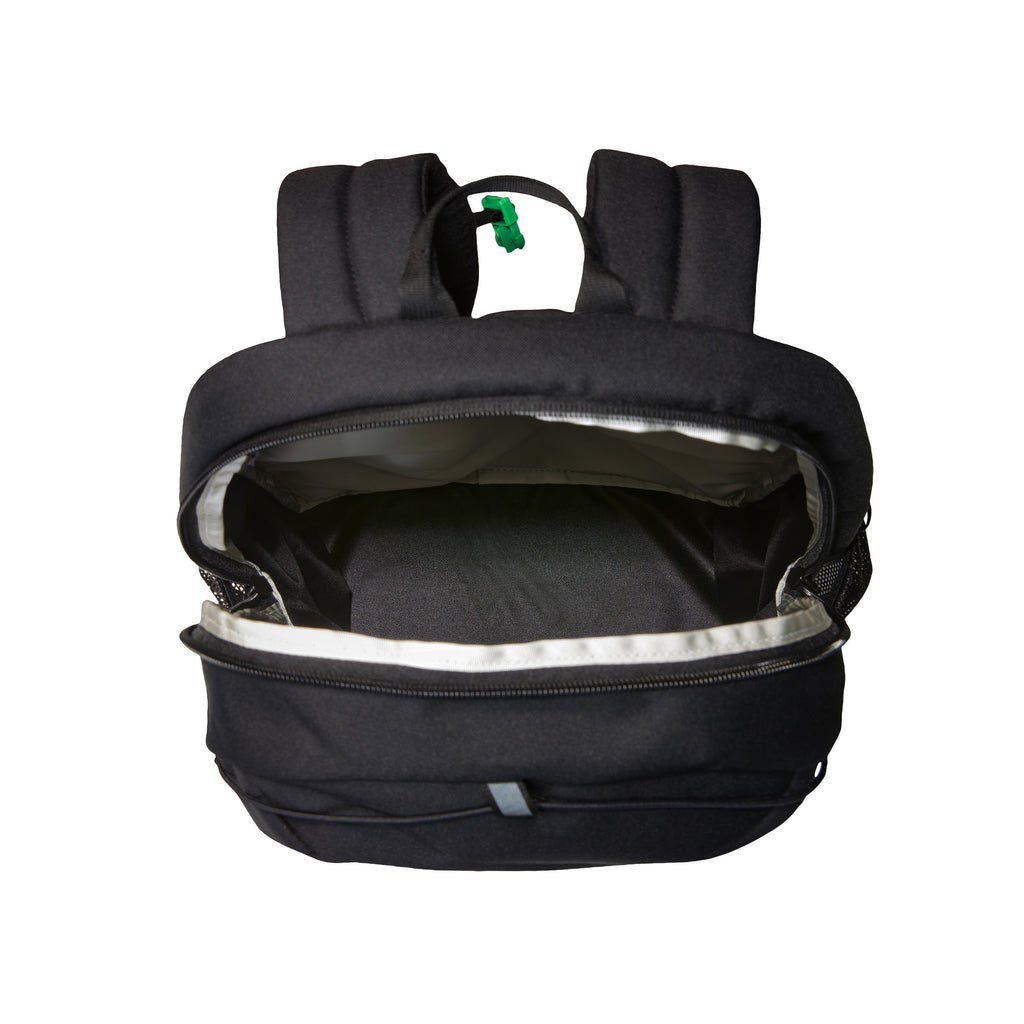 Crafted from recycled 600D polyester with a Non-PFC DWR finish, this backpack resists light moisture and stands up to everyday wear and tear. The front bungee system accommodates bulky items like jackets or helmets, and 360-degree reflectivity ensures visibility in low-light conditions. With features like a sternum strap, internal name tag, and divider sleeve, this backpack is as practical as it is eco-conscious.