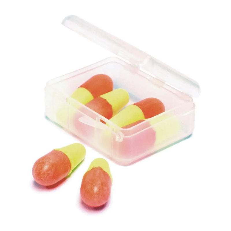 They fit snugly to the shape of the inner ear to reduce noise disruption. The hygienic plastic case contains three pairs.