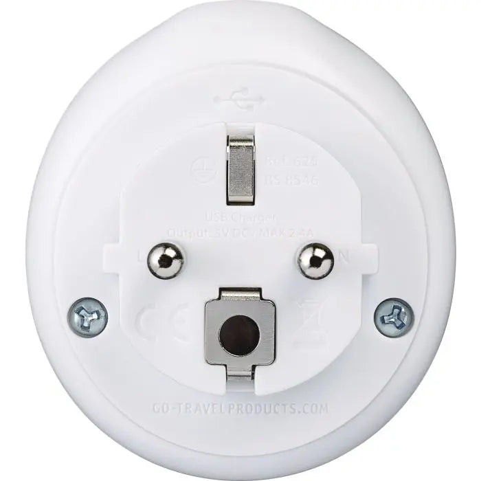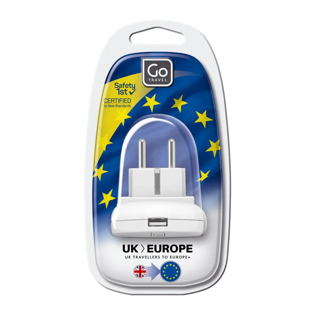 Maximize your travel convenience with the Go Travel UK-EU Adaptor + USB, expertly designed to connect British & Irish 3-pole earthed plugs with most European sockets. Its integrated USB port enhances your charging capabilities, making it an indispensable tool for modern explorers.
