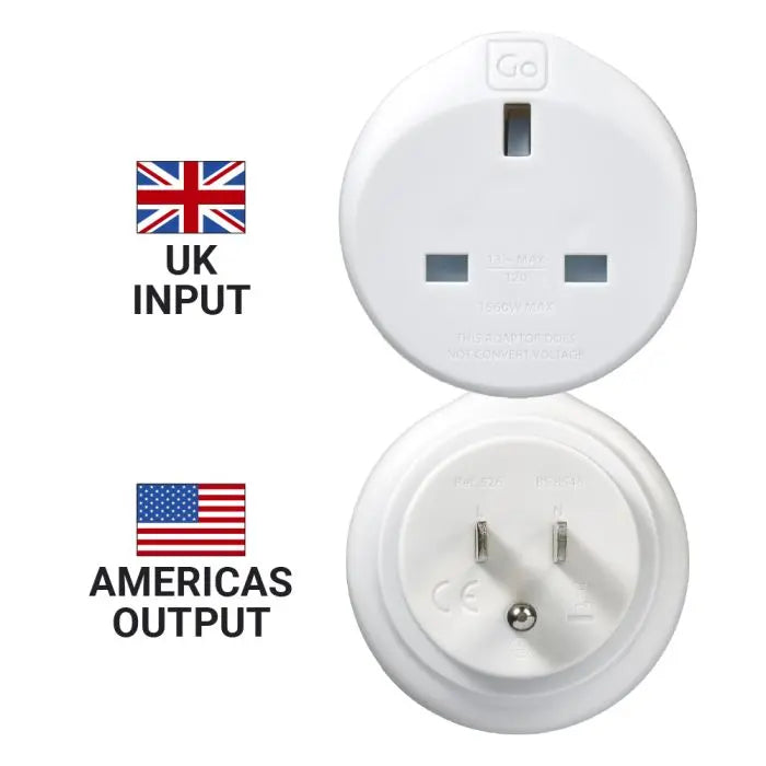 • Earthed Adaptor: Ensures a safe connection for UK travellers to the Americas, protecting your devices and personal safety.