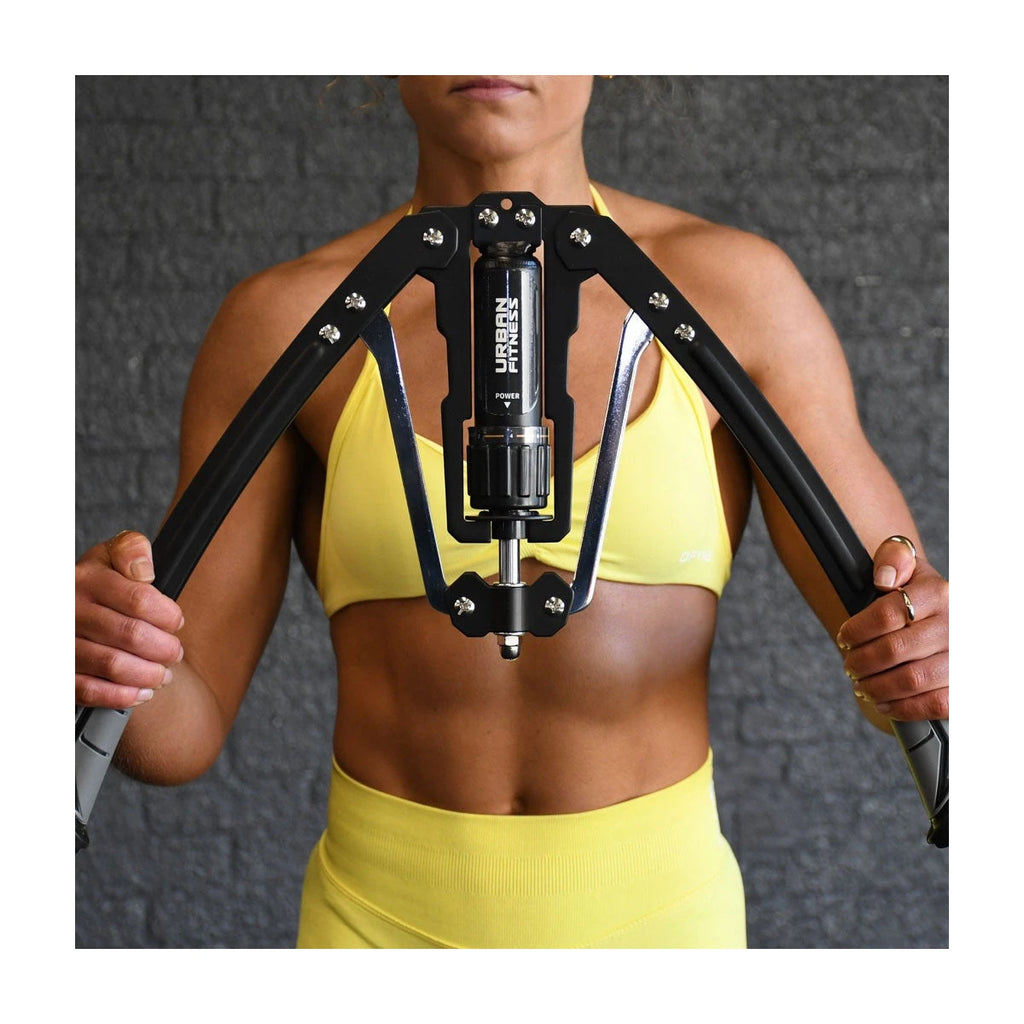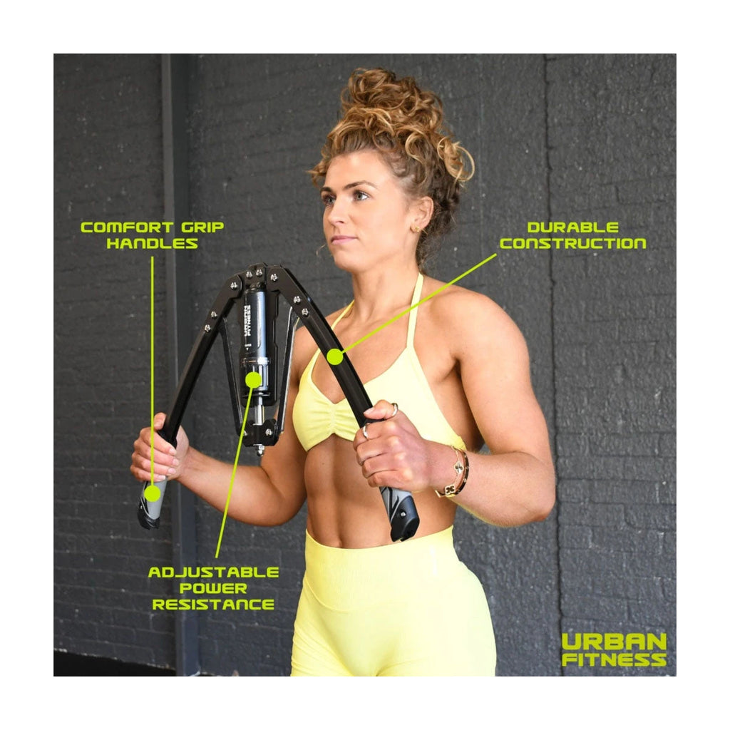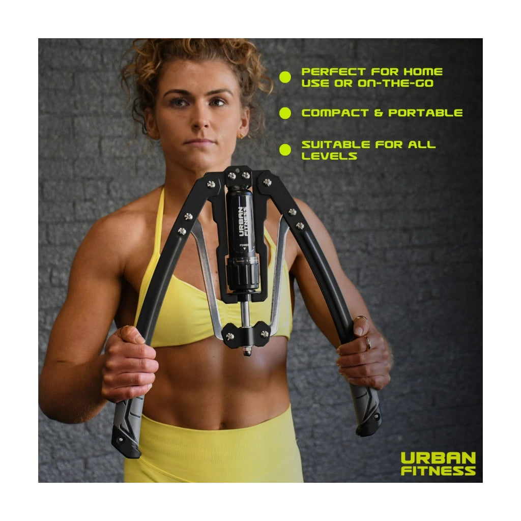 The Urban Fitness Hydraulic Arms Trainer is a versatile and compact workout tool designed to enhance strength and endurance. With 20 adjustable resistance levels, it caters to all fitness levels, allowing you to gradually increase the intensity as you build strength. The ergonomic, non-slip handles ensure a secure and comfortable grip, while the lightweight, portable design makes it easy to store and use on the go. This durable and user-friendly trainer requires no complicated assembly and minimal maintenance, making it perfect for achieving effective results in the comfort of your home or wherever you choose to work out.