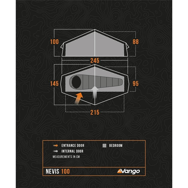 The Vango Nevis 100 is a compact and lightweight 1-man tent with good head height, designed for quick and easy pitching.