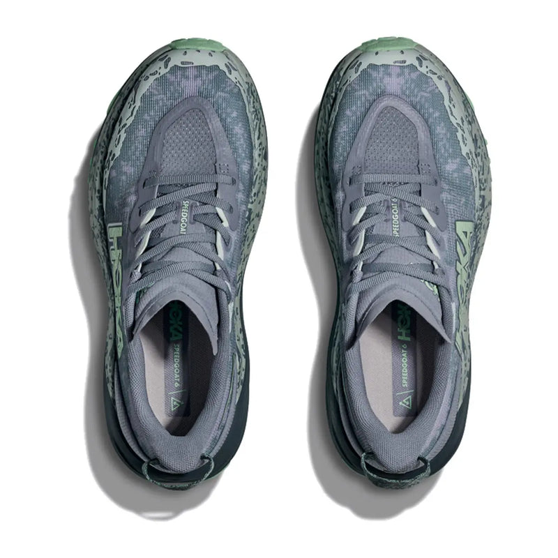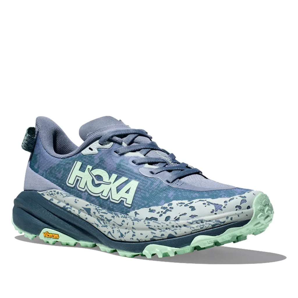 Conquer technical terrain with the HOKA Speedgoat 6, the ultimate trail running companion. Featuring HOKA’s renowned cushioning, Vibram® Megagrip outsole, and a breathable woven textile upper, this shoe provides grip, comfort, and responsiveness. Built to perform on challenging trails, the Speedgoat 6 includes a redesigned internal chassis and dual-gusset tongue for secure, plush support.