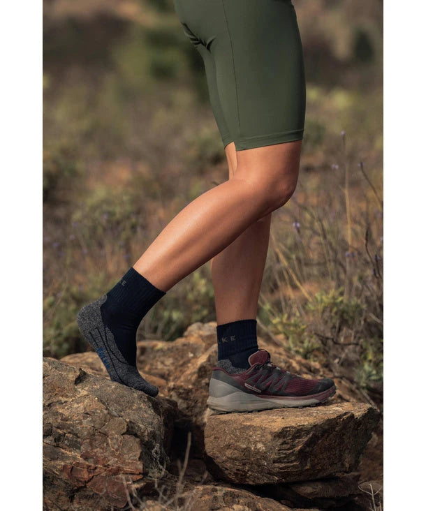 The Falke TK2 Explore Cool Short Socks are designed with a female-specific fit, adapting snugly to narrower feet for a comfortable and secure fit on any trail. These socks not only keep your feet dry but also feature a unique cooling technology, setting them apart in comfort and performance for hiking enthusiasts.
