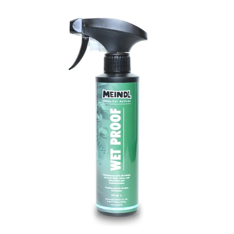 Meindl Wetproof is a pump action spray suitable for all types of footwear, including leather, suede, and fabrics.