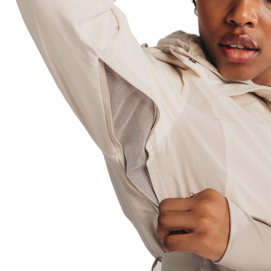 A cinched waist, colour block detailing, and multi-pocketing make this jacket as functional as it is flattering.