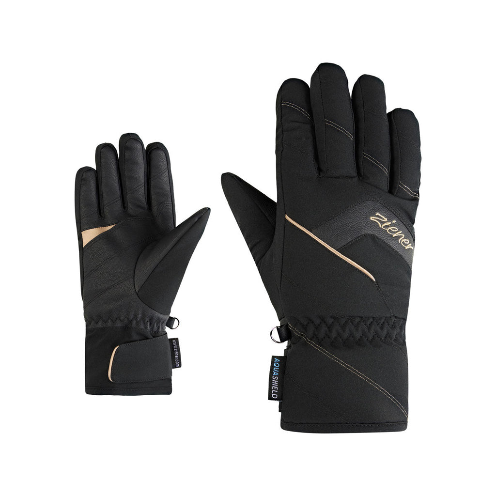 The Ziener KARION-Z AS® LADY glove is a sporty, functional ski glove designed for women who want reliable warmth and weather protection. Featuring the breathable AQUASHIELD® membrane and a secure wrist closure, it keeps hands dry and comfortable in winter conditions. With PFAS-free treatment and recycled materials, it’s a responsible choice for alpine adventures.